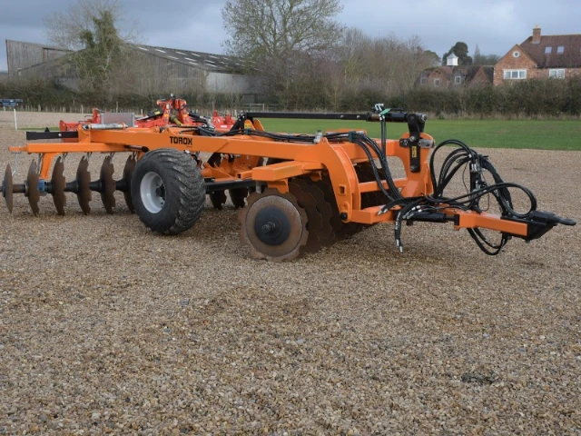 Ex-demonstrator, 2025 year. Excellent set of discs, versatile for an array of cultivation work. 3m working width, 710mm cutaway discs, heavy-duty frame. Hydraulic disc angling (0 - 25 degrees), hydraulic weight transfer - front to rear, hydraulic off-set drawbar, 22 discs, 156kg/disc.