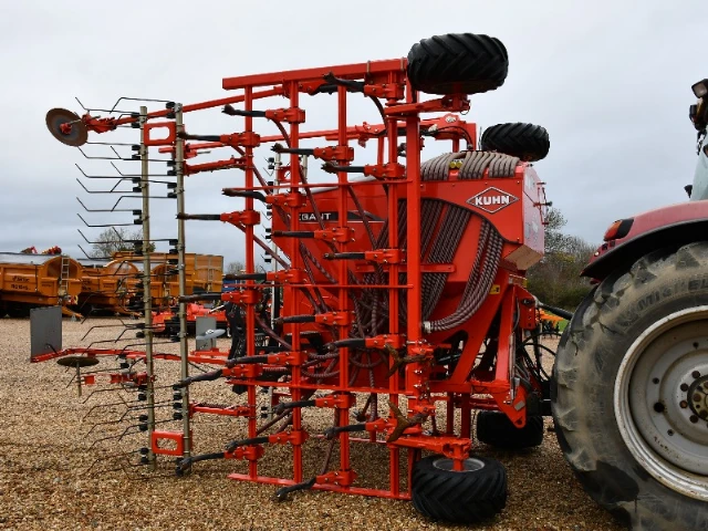A combi or combination seed drill is an agricultural machine that allows for efficient seed planting. A combination drill combines ploughing and sowing into one, using tine or disc cultivators to turn and produce a stale seedbed before sowing the seeds.