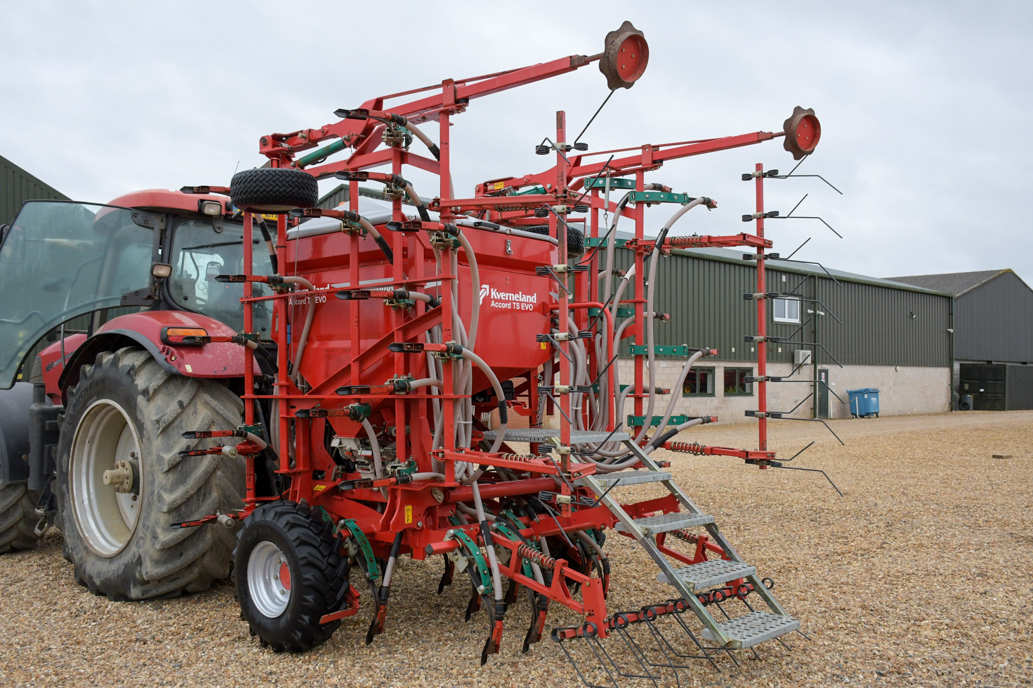Hydraulic fan, complete with bout markers and rear following harrow. Good straight drill.
