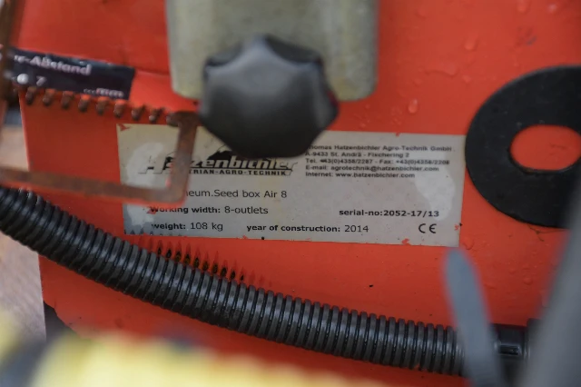2014 year, good condition 8 outlet seeder. Land wheel driven, complete with spreader plates.
