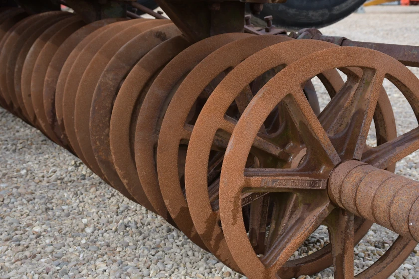 Single row cast ring packer, complete with leading leaf spring tines. Hydraulic folding, contour wings.