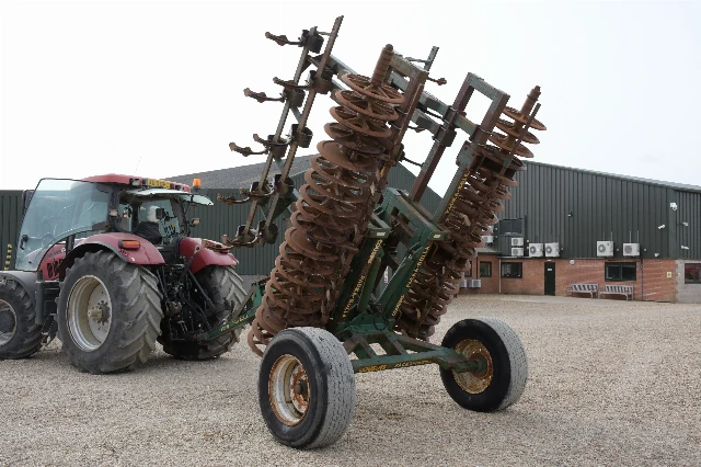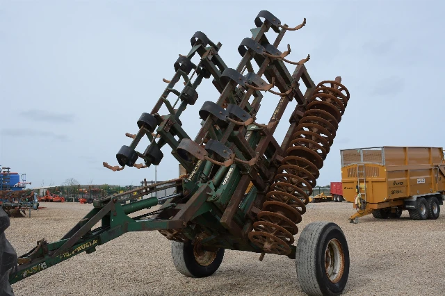 Rouleau simple rangée à anneaux fonte, complet avec dents ressort avant. Repliage hydraulique, ailes suiveuses.