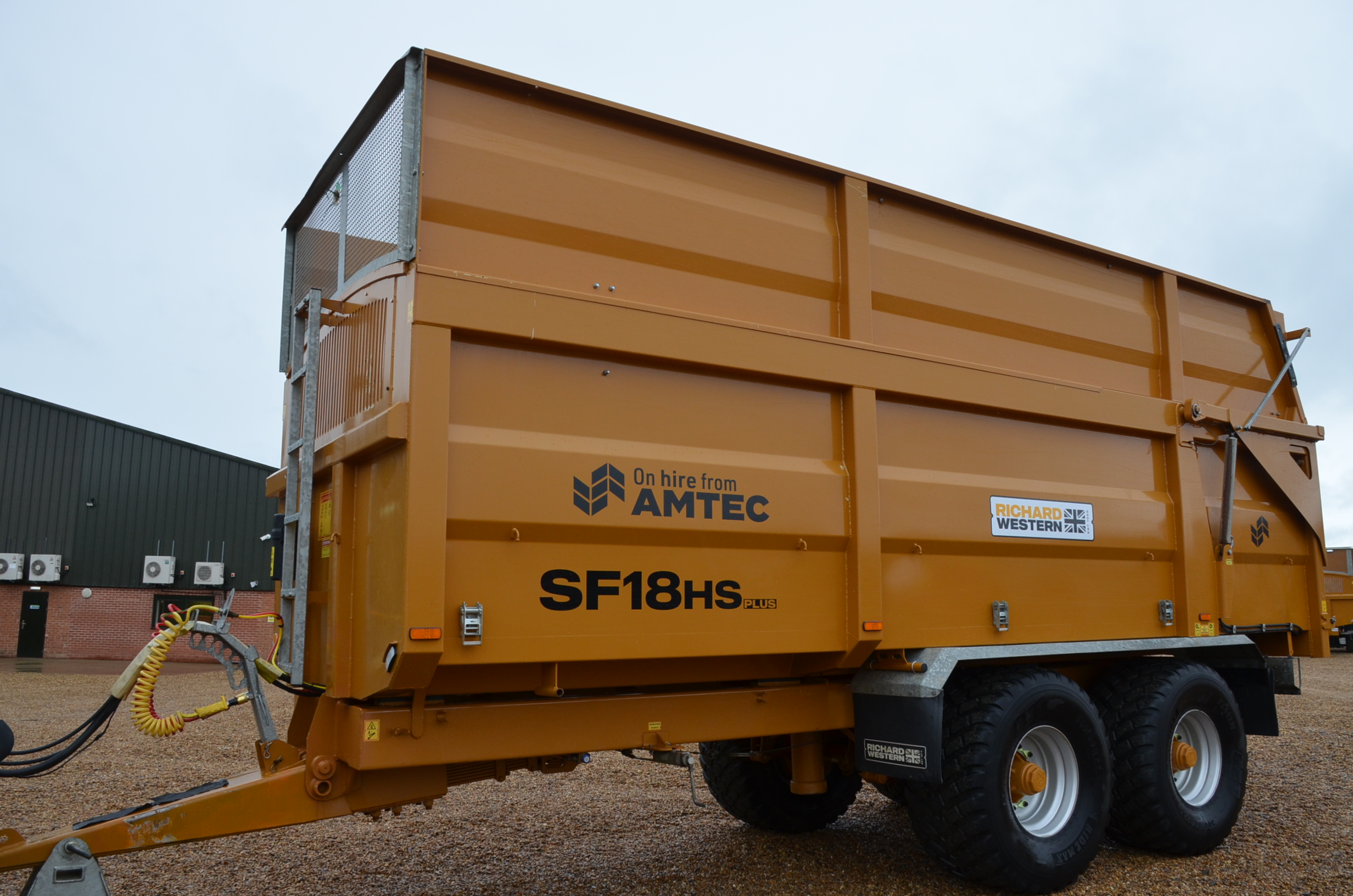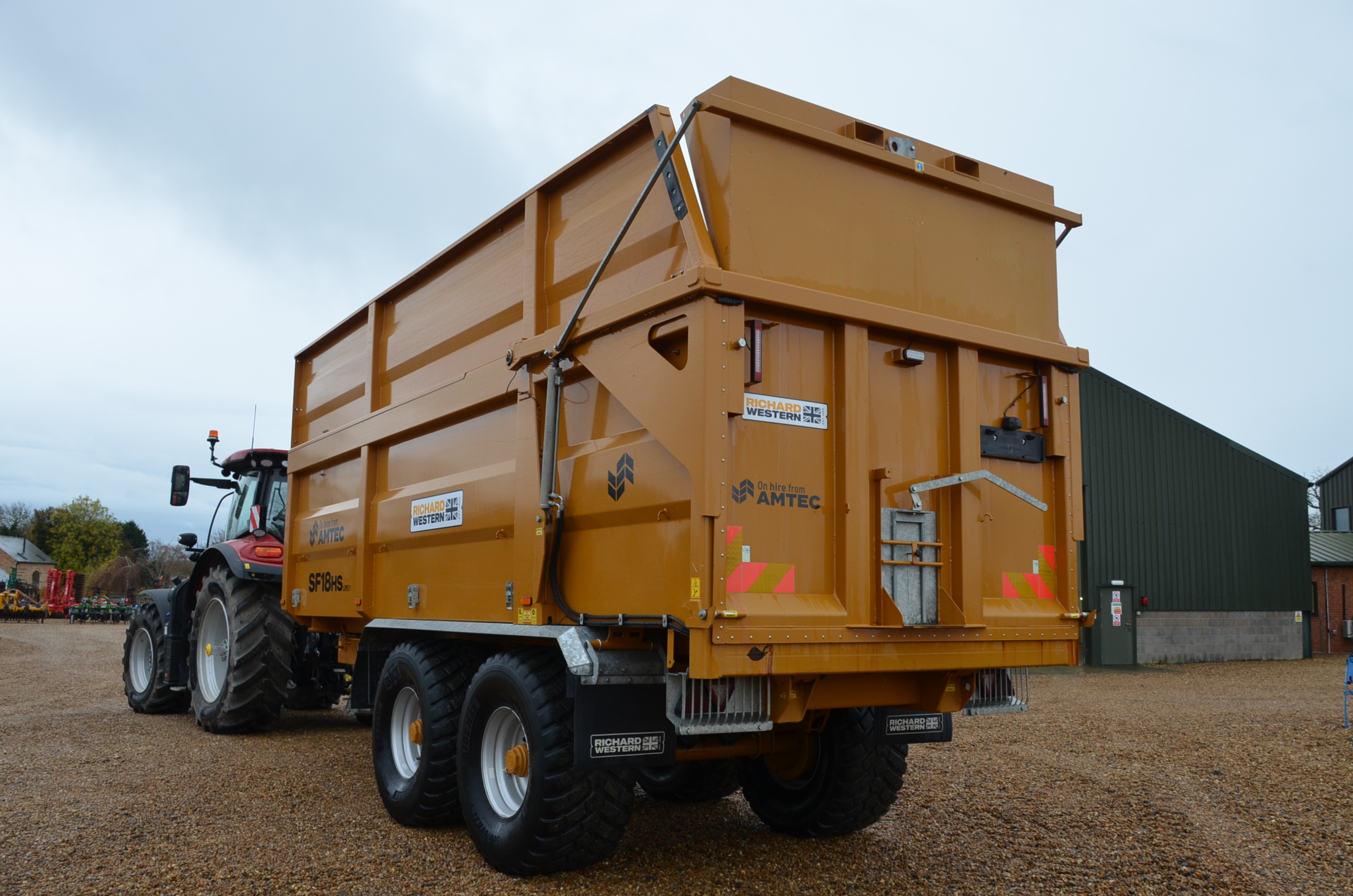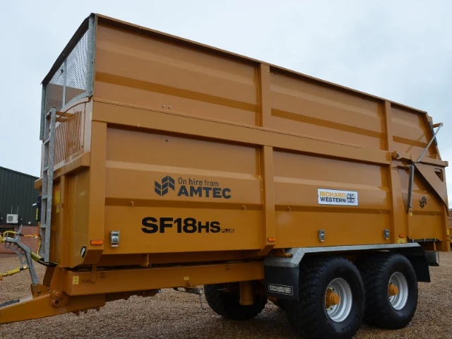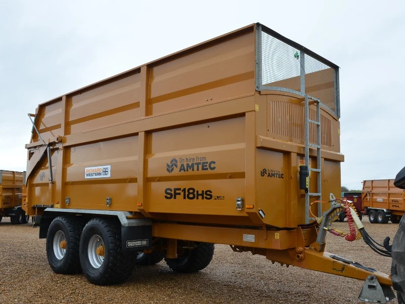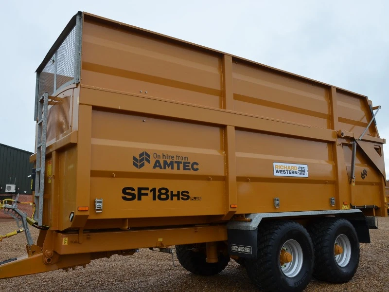 Remorque à grains de 18 tonnes, modèle 2022, ex-location, freins hydrauliques à air, porte arrière hydraulique, goulotte à grains, pneus de flottaison.