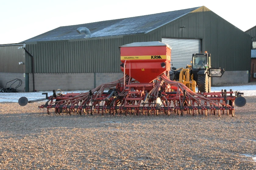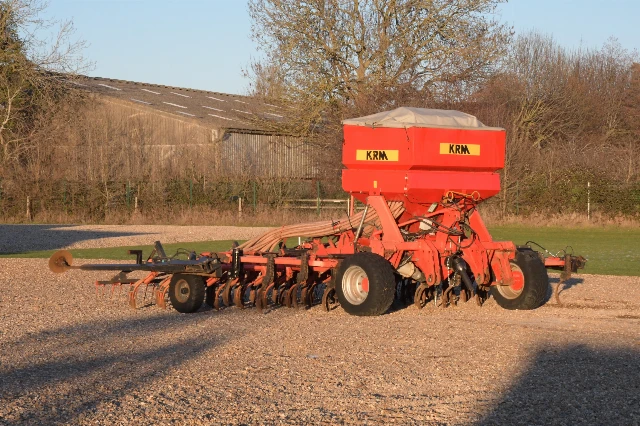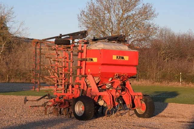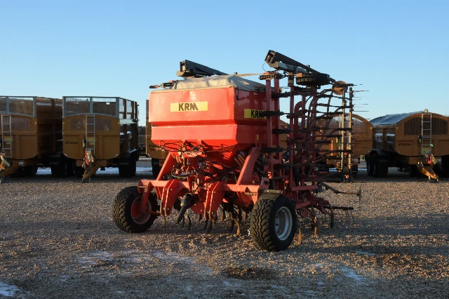 Semoir à dents très sain. Bonnes pointes. Turbine entraînée par PDF. Complet avec traceurs de bout et de pré-levée, et herse suiveuse.