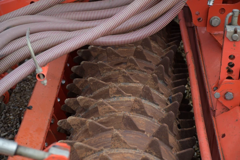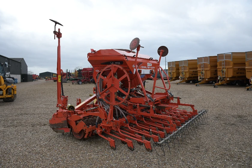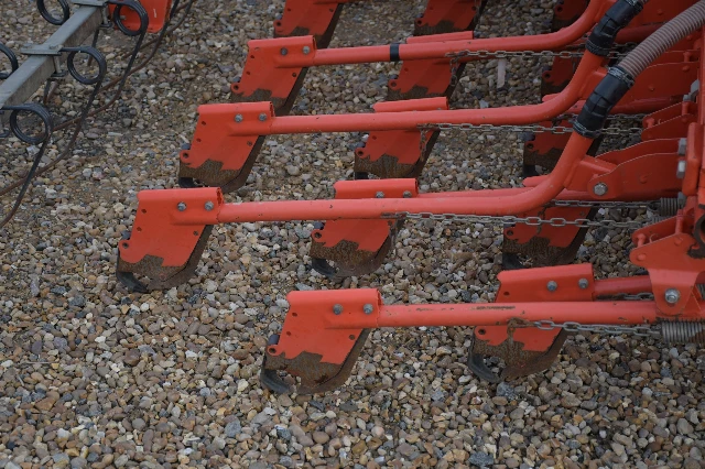 Excellent état. Dégagement triple rangée, éléments semeurs Suffolk, entraînement par roue au sol. Complet avec efface-traces, traceurs de pré-levée et de bout de champ.