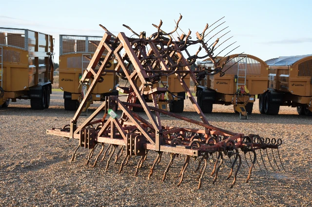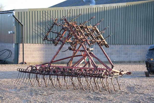 Manual folding, spring tine cultivation with rear following harrow.