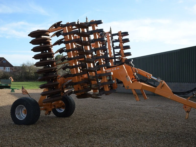 We frequently have practical UK working widths like 3m and 4m, plus larger folding units (availability varies). The quickest way to confirm widths in stock is to check the live listings of used cultivators.