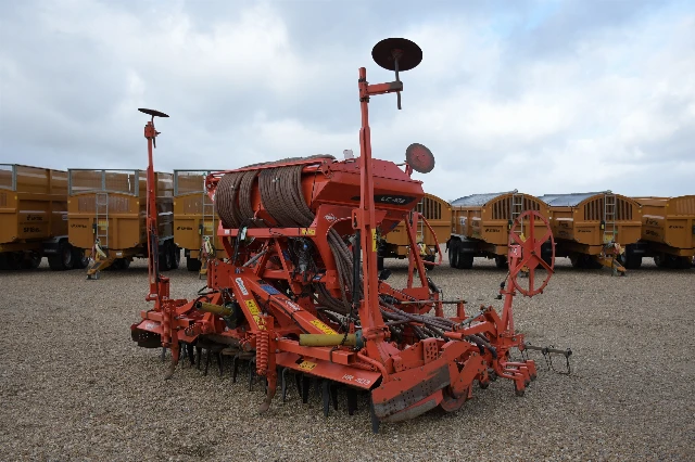 A combi or combination seed drill is an agricultural machine that allows for efficient seed planting. A combination drill combines ploughing and sowing into one, using tine or disc cultivators to turn and produce a stale seedbed before sowing the seeds.