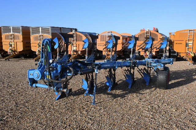 5+1 furrow configuration, hydraulic vari-width plough. Complete with hydraulic auto reset and slatted bodies (BS-40). New points, shins, skim mouldboards, skim points. Wide depth wheel. Very straight plough.