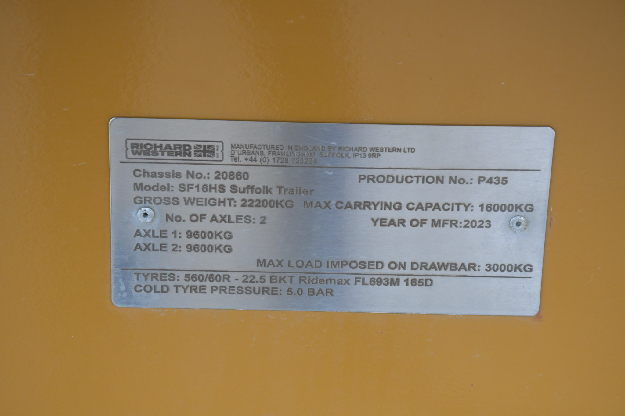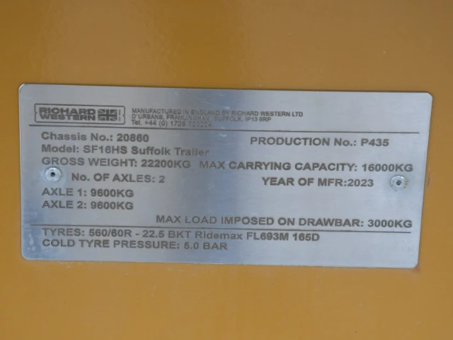 Hire from £330 per week2023 year, 16 tonne trailer, silage sides, air hydraulic brakes, hydraulic back door grain chute, flotation tyres.